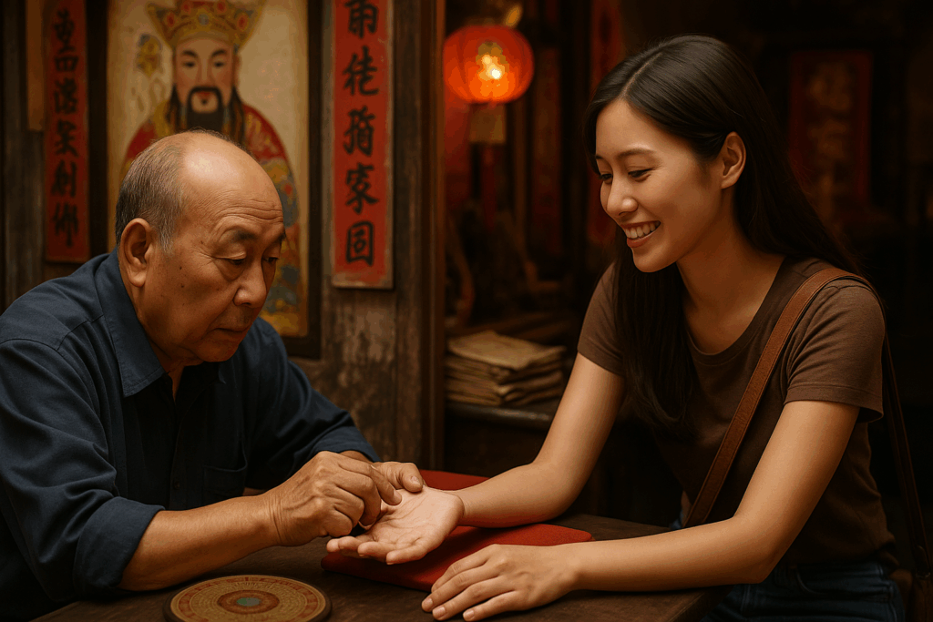 地元の雰囲気に包まれながら、老舗の占い館で手相を見てもらう時間は、まるで映画のワンシーンのようです。