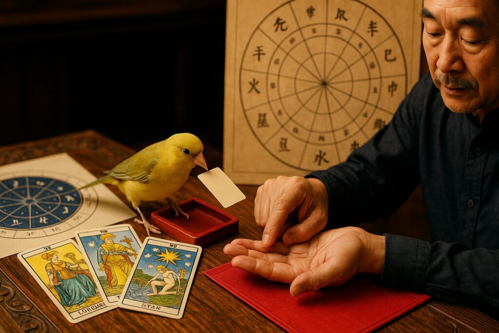 小鳥がカードを引いて運勢を告げるという、まるで縁日のようなスタイルで、初めてでも気軽に楽しめます。